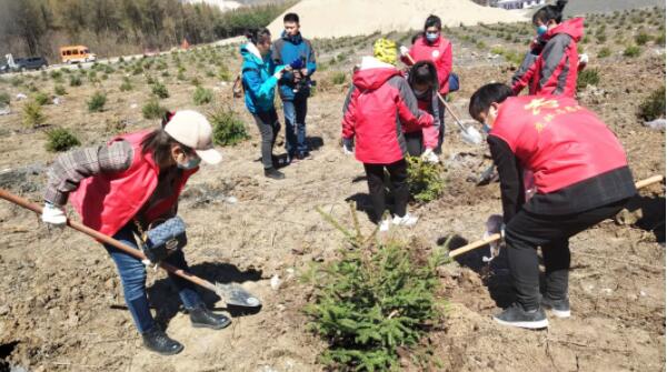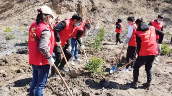 志愿者們參觀了“保護(hù)生態(tài)環(huán)境主題展板”,沿著晨光路進(jìn)行“健康徒步”,最后來到虎林水庫山上開始綠化植樹。大家有的拿樹苗,有的挖坑,有的培土,忙碌的場(chǎng)面,熱火朝天。一個(gè)個(gè)鮮紅的身影,一顆顆翠綠的樹苗,一面面飄揚(yáng)的旗幟,在這片空曠的土地上編織出一幅美麗的畫卷。
